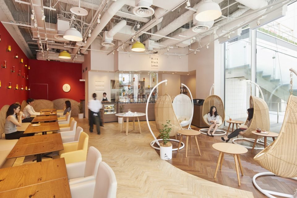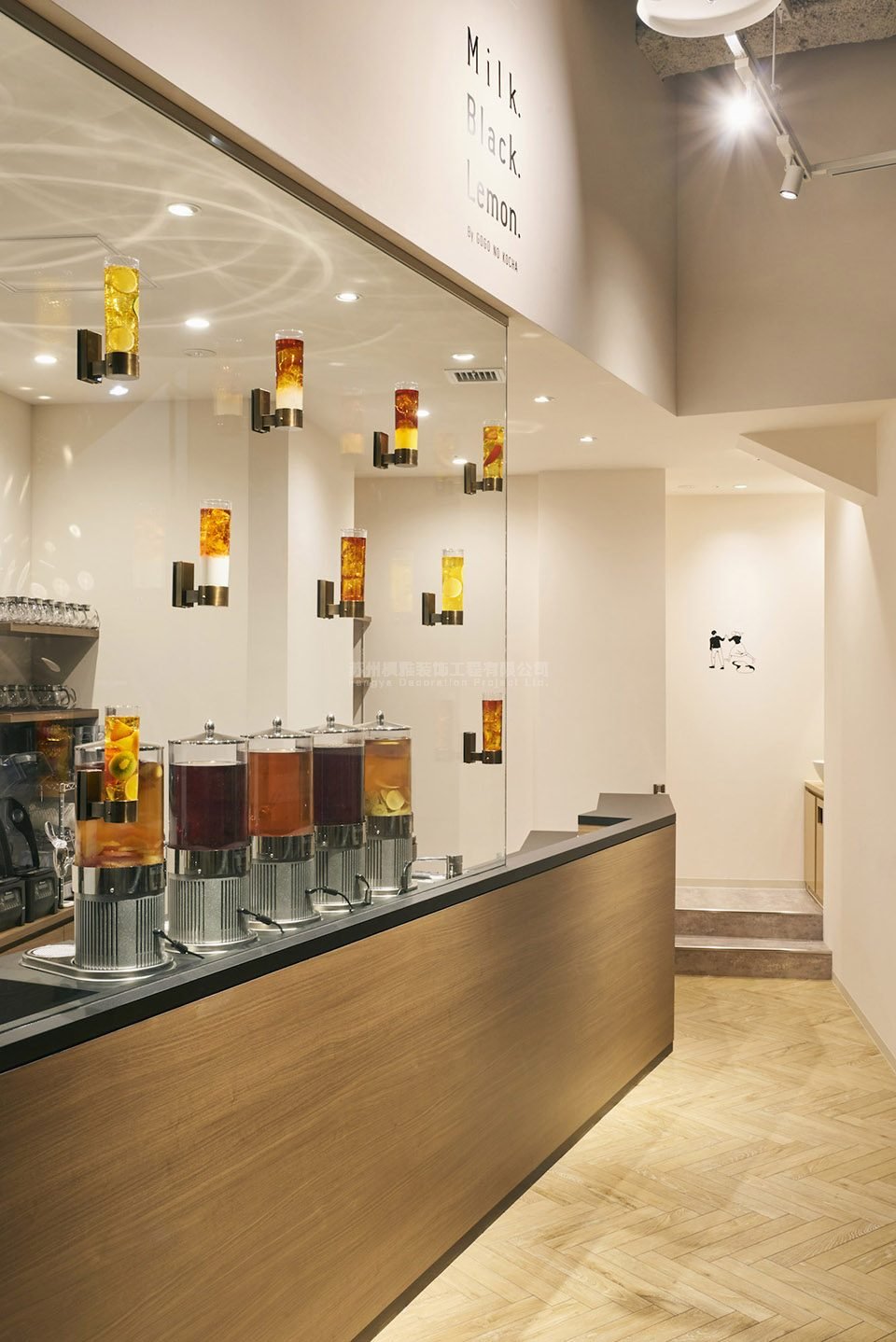座位区和服务区上方的茶灯细致地再现了茶屋中提供的各类红茶饮料,整间茶屋完全被丰富的茶色照亮。茶屋中的所有事物皆是为了提供全新的、轻松惬意的饮茶体验。