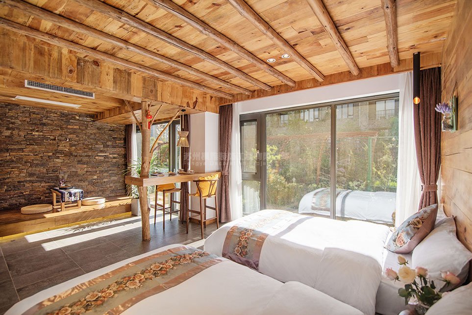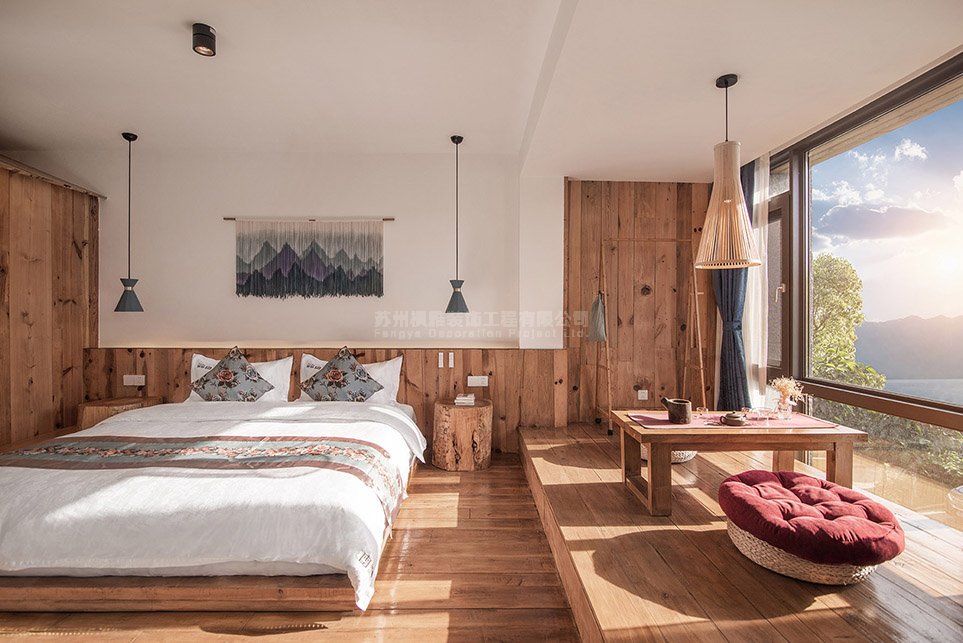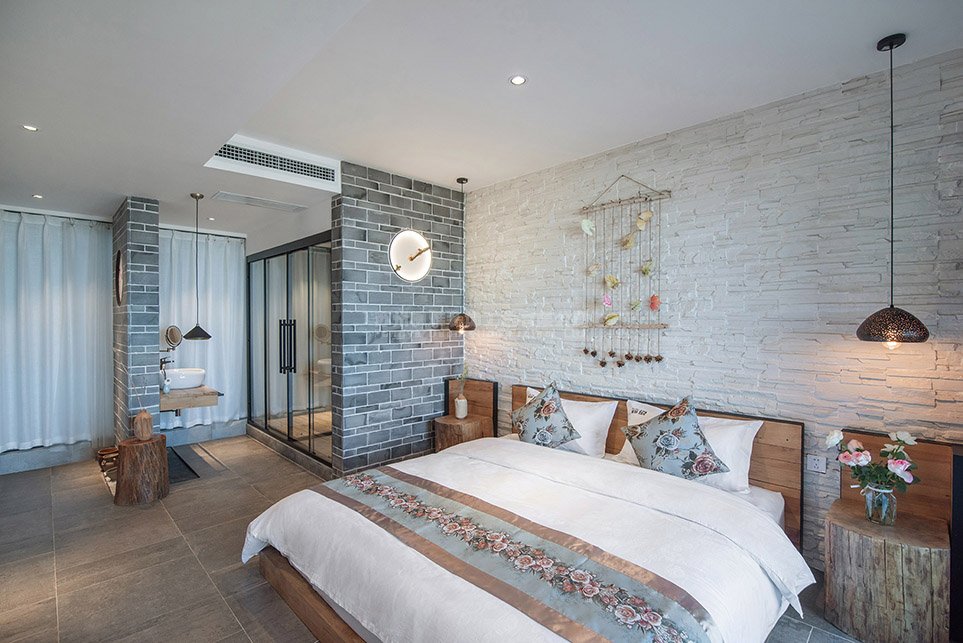案例介绍:民宿设计分别以新中式、复古,北欧等风格为基调,搭配简约现代的空间来表现,最终形成了既大相径庭又和谐统一的客房装修方案,并为业主创造了良好的经营成果。砖和老木头在装修中让人在不经意中对时空有所回味,仿旧家具和艺术品的配置,也使卧室更加了时代感,总之苏州民宿设计就是化腐朽为神奇,在怀旧朴实中体现典雅的空间气质。