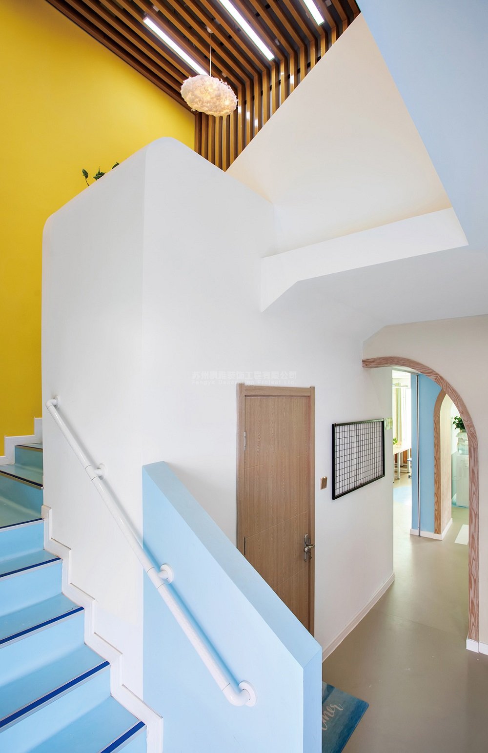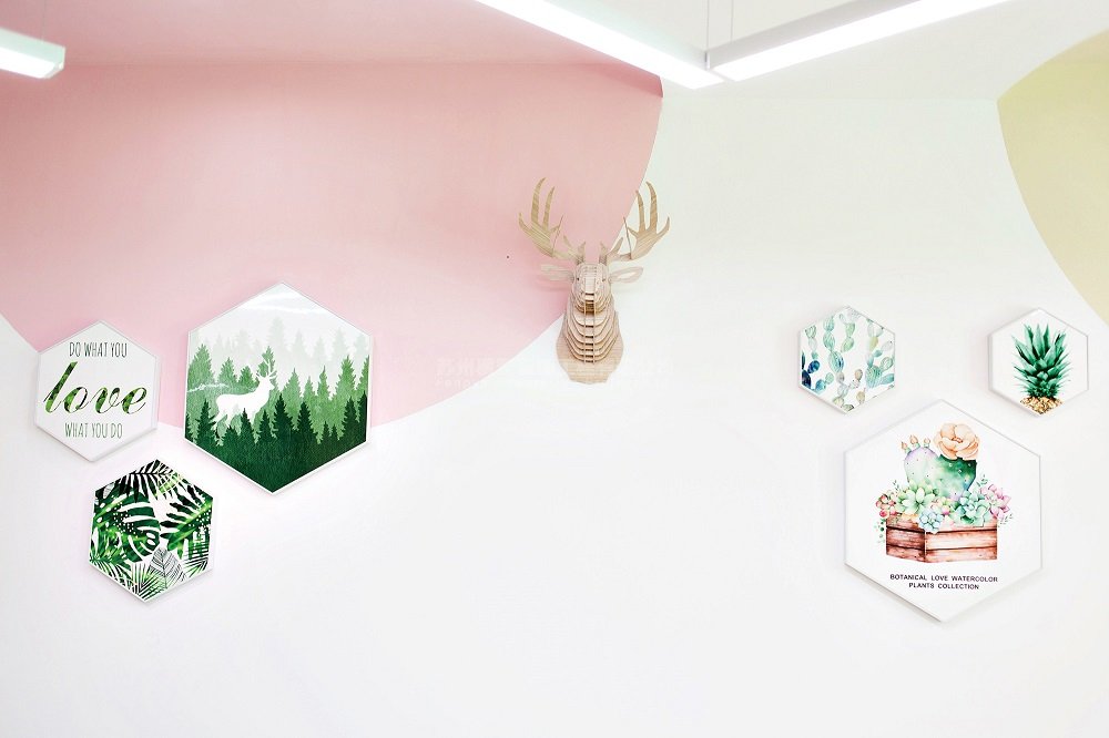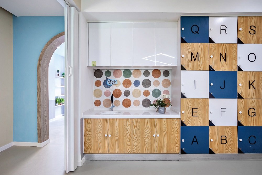 项目简介:在本案创作伊始,我们与业主促膝长谈,有关于创办这间早教机构的初衷,有关于对教育方面的见解,有关于业主作为一个教育工作者对孩子们特殊的情感……等等。作为一个早教空间,我们认为孩子所处的环境本身就是一个十分重要的教育渠道。一株含苞待放的小花,一只清晨鸣唱的小鸟,崭露头角的新芽,从中窸窣的虫儿……对于成人再平常不过的事物,在孩子的眼中都可能会蔓延出一个新奇的故事。然而事实上,我们当今的教育总是急切的让孩子学知识和本领 ,却忘了让他们停下来,体会一下这个美妙的世界。依据业主对于本案的初衷,我们的设计团队将博昱教育的整体风格定位为清新自然、放松休闲。整个空间中,除去作为主体的学习空间之外,我们还规划了阅读空间、游戏空间、活动空间、就餐空间等等,让孩子们可以充分的体会到,在他们的生活中,除了学习之外,还有很多有趣的事情在等着他们去探索。