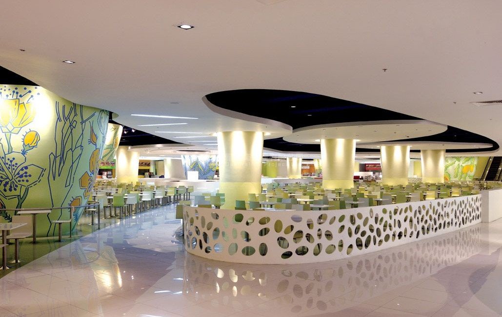 生活超市给消费者的生活提供方便、自由、舒适、安全的服务场所在消费者自主选购商品以后,可以到休闲区的餐桌休息和品尝美味的食品。休闲区采用半开放式的隔断,这样不但能提高空间的利用率,镂空式的隔断使整个空间更增添了一丝美感。