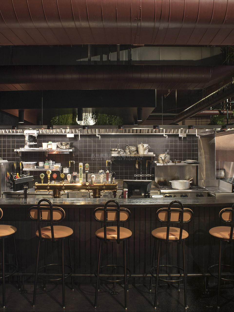 项目简介:这家酒吧,以前曾是一家汽车修理厂,因此空间内部保留着古老的裸露钢梁结构。