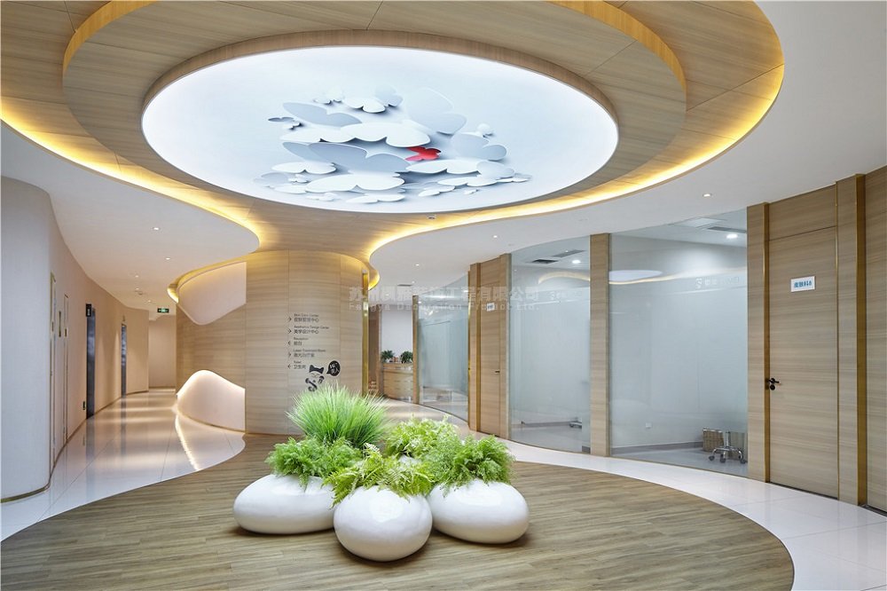 项目简介:女性的美,是岁月的赐予与时间的沉淀,来自于内心的自信与气质的散发。设计师将医美空间与女性的特点相结合——曲线、柔美,如水波清风般拂面,并在本案设计中将其发挥利用到最大化,空间上力求营造温馨舒适,放松心情的效果,材质上则秉承“素美”原则,干净整洁,素雅柔美。设计师擅长的材质运用,拼接撞色带来的点睛之笔,将两者的比例拿捏的刚刚好,既有刚毅的棱角,又有女性的活泼,两者的克制都点到为止,设计师说,曲线的美感其实在于流动的韵律。尊重建筑的原始结构特征,因势造形,在充分满足使用功能的同时,注重品牌的独特与个性,加入品牌色彩,带给顾客耳目一新的视觉享受,将设计定义在素雅柔美空间里一种自信的张力。