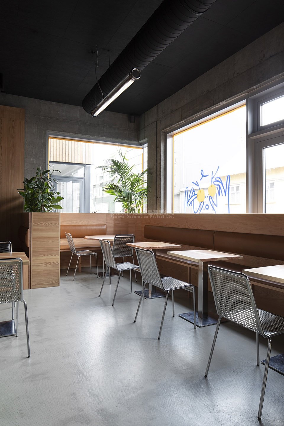 本项目从北欧和日式美学中汲取灵感,并通过现代的设计手法将其表现了出来。餐厅的招牌菜是用蒸面包制作的柚子汉堡,其他菜品则多为由柚子制作的日式美食。设计团队希望能够通过融合北欧和日式美学,打造出一个轻松愉快的用餐环境。