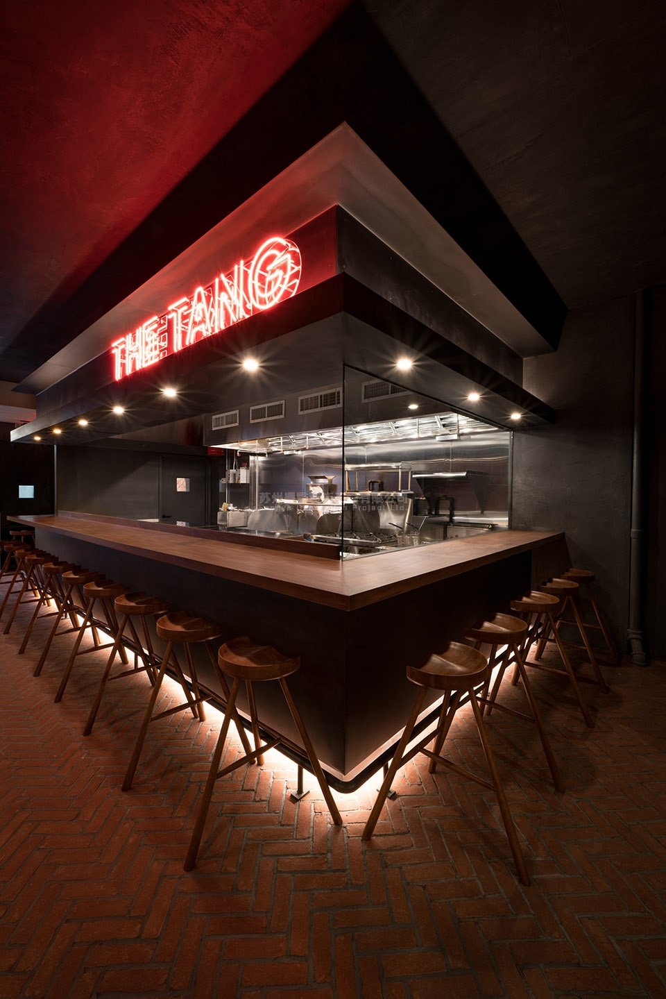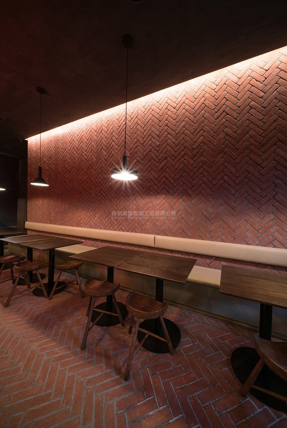 项目简介:这家门店以黑色和深红色为主调,偏现代风格加入中式元素,抛去大众心里传统的中式餐厅