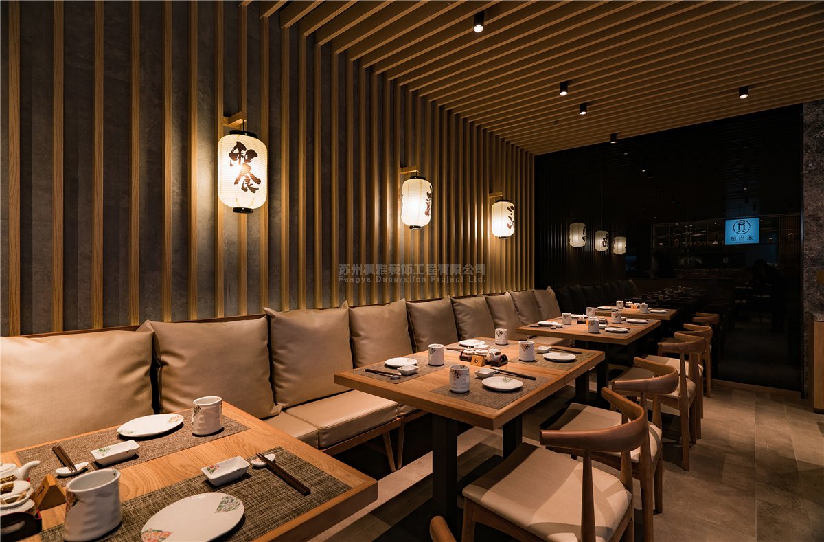 项目简介:传统的日式料理,更多是以日本自古以来的情愁、冷艳为主色调,木制的颜色让整个环境充满古色古香的感觉,天花板上挂着的灯散发出暖黄色的灯光,显得更有格调