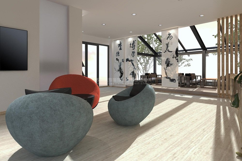 项目简介:此设计案例以人文化的设计为主,将中国传统文化融入当代审美,同时立足于当地的历史传统,深入挖掘文化底蕴,以现代视角将其精髓淋漓尽致展示出来,使空间渗透着典雅而尊贵的气派。在设计上,为了追求大空间所带来的尺度感,我们摒弃了过多的隔断和装饰,从材质的构成自然的延伸了原始空间与新力量的融合。灯光明亮暖黄,给人温暖的初印象,四处无规律搭配的座椅,其形式、材质与空间背景相呼应,优雅舒适,彰显待客的仪式感。墙面艺术品仿佛抽象水墨画,是“着墨留白皆自然”的清静,笔墨间更显书香气息,更具古典艺术的特质。