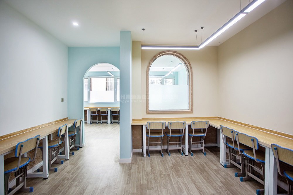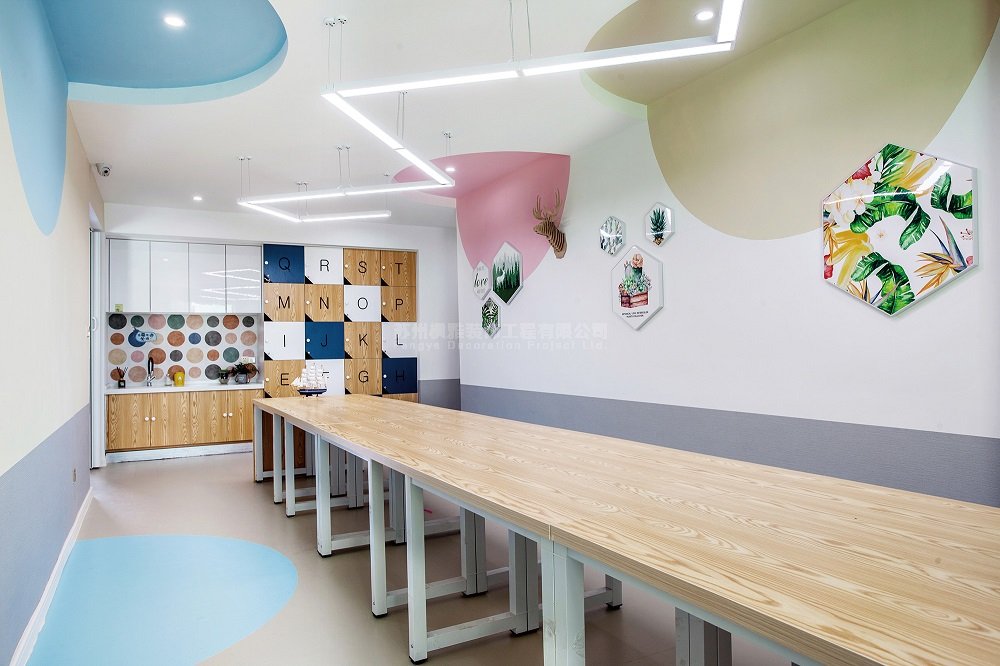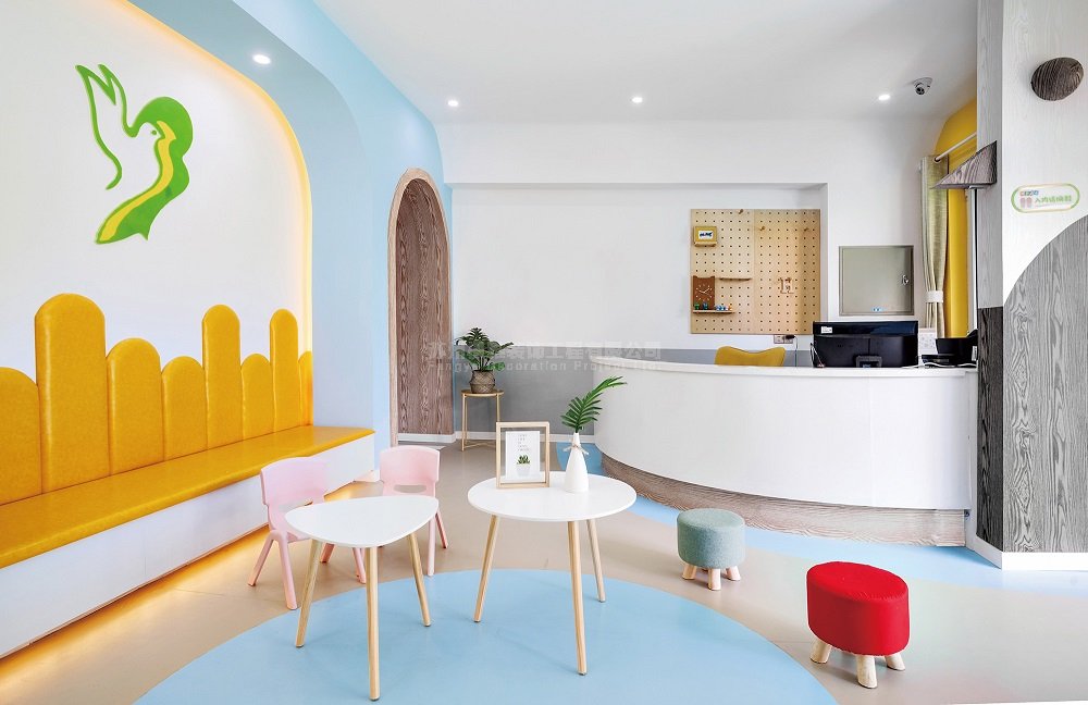 项目简介:在本案创作伊始,我们与业主促膝长谈,有关于创办这间早教机构的初衷,有关于对教育方面的见解,有关于业主作为一个教育工作者对孩子们特殊的情感……等等。作为一个早教空间,我们认为孩子所处的环境本身就是一个十分重要的教育渠道。一株含苞待放的小花,一只清晨鸣唱的小鸟,崭露头角的新芽,从中窸窣的虫儿……对于成人再平常不过的事物,在孩子的眼中都可能会蔓延出一个新奇的故事。然而事实上,我们当今的教育总是急切的让孩子学知识和本领 ,却忘了让他们停下来,体会一下这个美妙的世界。依据业主对于本案的初衷,我们的设计团队将博昱教育的整体风格定位为清新自然、放松休闲。整个空间中,除去作为主体的学习空间之外,我们还规划了阅读空间、游戏空间、活动空间、就餐空间等等,让孩子们可以充分的体会到,在他们的生活中,除了学习之外,还有很多有趣的事情在等着他们去探索。