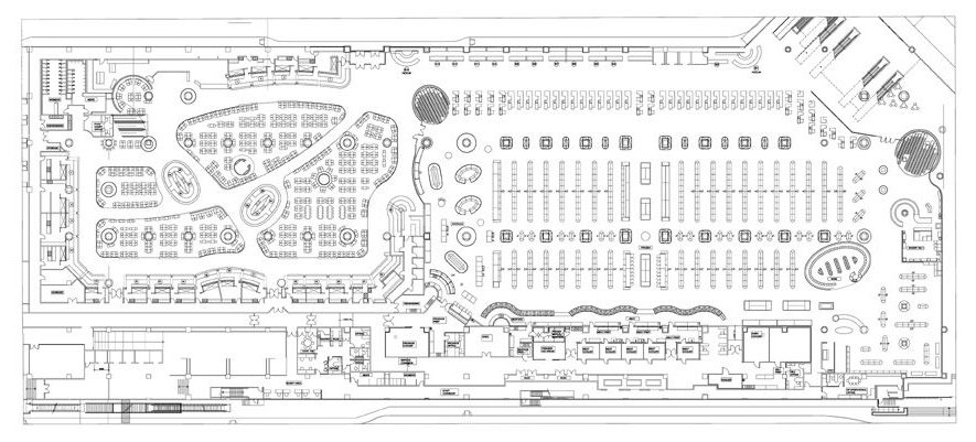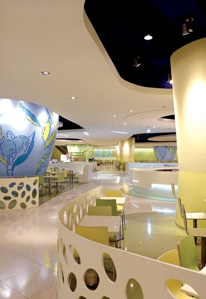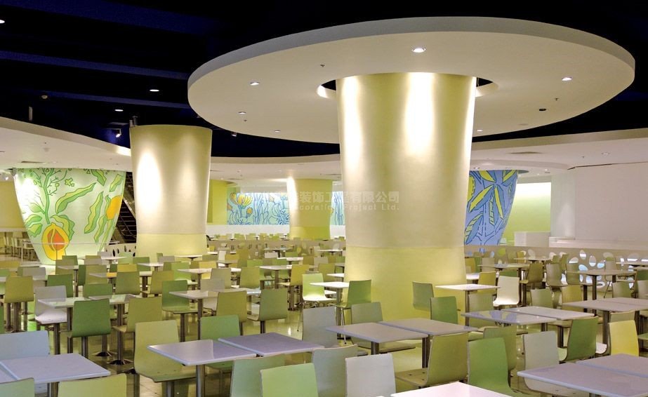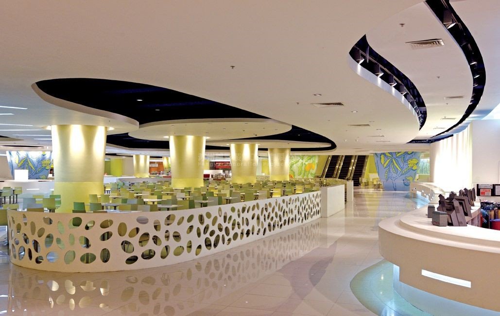 生活超市给消费者的生活提供方便、自由、舒适、安全的服务场所在消费者自主选购商品以后,可以到休闲区的餐桌休息和品尝美味的食品。休闲区采用半开放式的隔断,这样不但能提高空间的利用率,镂空式的隔断使整个空间更增添了一丝美感。