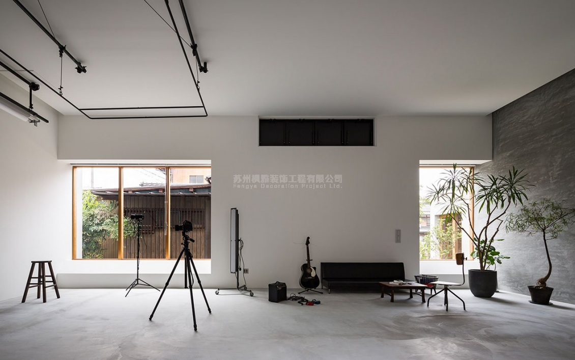 项目介绍:该建筑被用作摄影师和他的住所的工作室和画廊。客户要求将工作室与他的生活空间联合起来。房子巧妙地结合了要有充足的阳光和隐私的需求,它的外观是一种由瓦楞钢和灰色灰泥组成的盒子,与神社隔街相望。尽管它的立方几何结构使建筑与众不同,反射的镀锌钢板也增强了它的质量,但其适度的比例并没有使建筑的结构变得不合适。