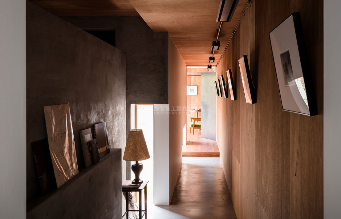 朴素的外表隐藏着一种更微妙的内部,在那里,光与影在一场激烈的比赛中扮演着一种引人注目的风格。进入时,光线昏暗、狭窄的通道会引导你进入一个明亮的大厅,这是由一个深设的天窗提供的,这是摄影师工作的一个画廊。从那里,另一条狭窄的走廊通向一个小木纹的客厅,垂直地排列着。