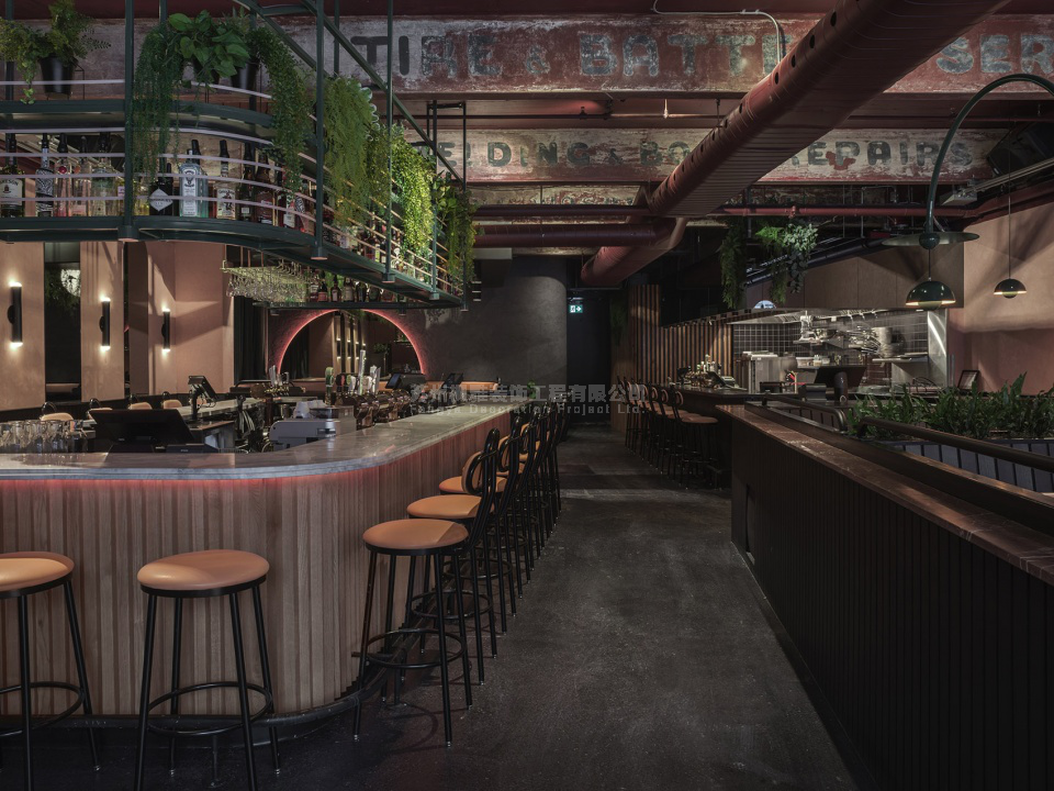项目简介:这家酒吧,以前曾是一家汽车修理厂,因此空间内部保留着古老的裸露钢梁结构。